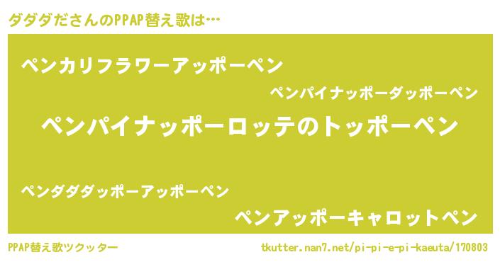 | ピコ太郎風あだ名 | 『ダダ太郎』『ダコ二郎』『ピダ次郎』 |