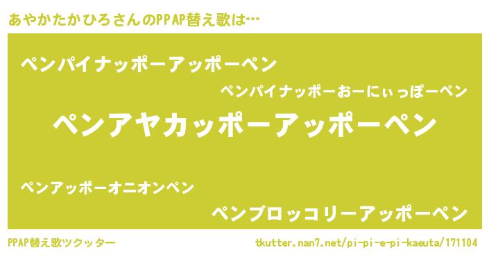 | ピコ太郎風あだ名 | 『アヤ八郎』『ピコア郎』『アコ十郎』 |