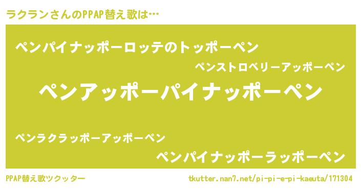 | ピコ太郎風あだ名 | 『ピラ太郎』『ララ太郎』『ピコラ郎』 |