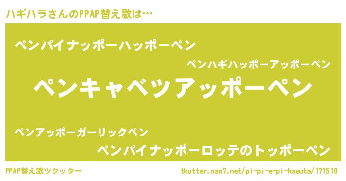 | ピコ太郎風あだ名 | 『ハコ四郎』『ピコハ郎』『ハハ太郎』 |
