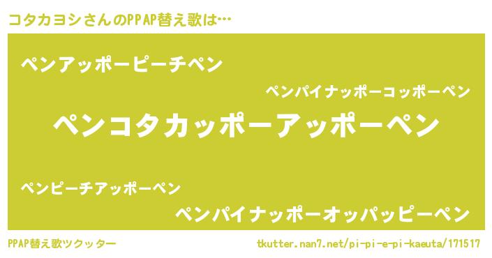 | ピコ太郎風あだ名 | 『コタ史郎』『ピコ次郎』『ココ太郎』 |
