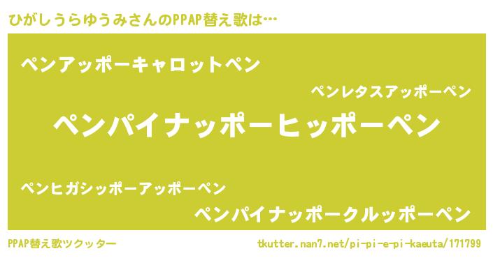 | 料理風あだ名 | 『満腹ひがしうらゆうみマフィン』 |