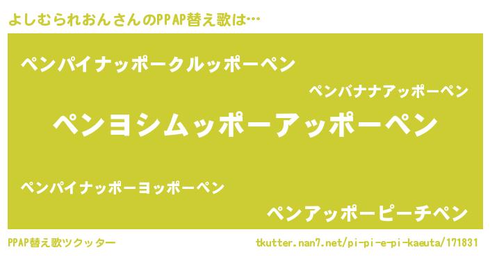 | ピコ太郎風あだ名 | 『ヨシ三郎』『ヨヨ太郎』『ピヨ次郎』 |