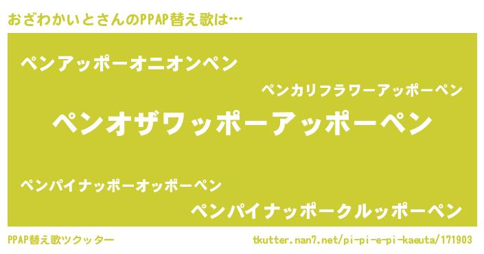 | ピコ太郎風あだ名 | 『オザ二郎』『ピオ六郎』『オオ太郎』 |