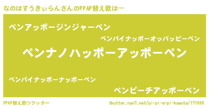 | 欧米人風あだ名 | 『ウサインなのはすうきぃらん』 |