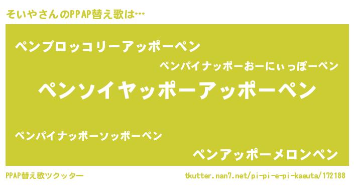 | 意味不明あだ名 | 『エリンギ科そいや属』『ペロリンそいや』 |