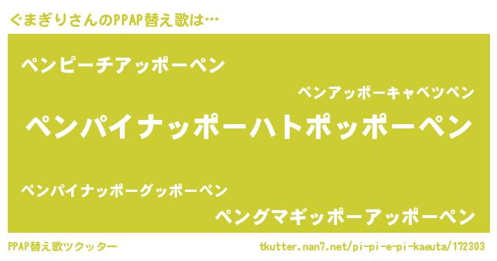 | ピコ太郎風あだ名 | 『ググ太郎』『グコ十郎』『グマ三郎』 |
