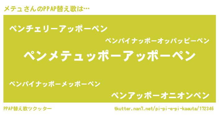 | 自動車の名前っぽいあだ名 | 『メント』『メテティマ』『メクア』 |