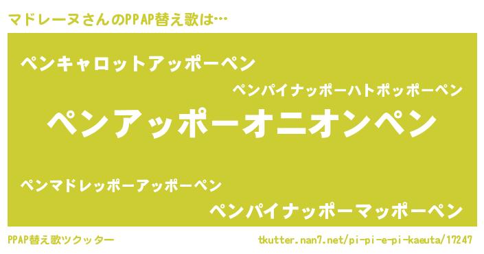 | 意味不明あだ名 | 『マドレーヌフォーエバー』 |