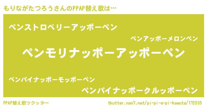 | ピコ太郎風あだ名 | 『モリ史郎』『モコ一郎』『モモ太郎』 |
