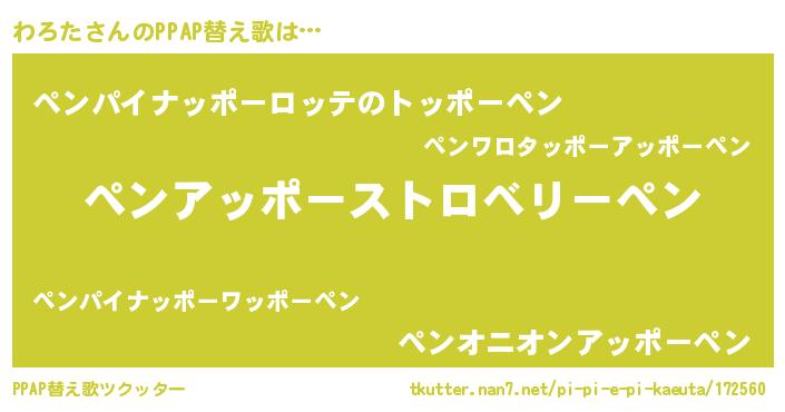 | ピコ太郎風あだ名 | 『ピワ一郎』『ワワ太郎』『ワコ六郎』 |