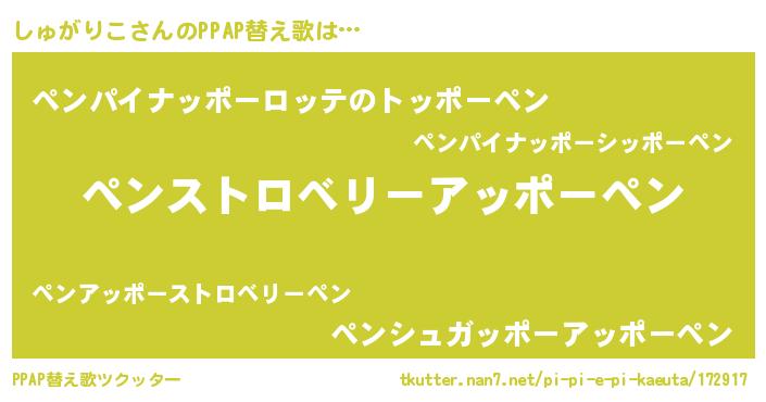 | ピコ太郎風あだ名 | 『シコ一郎』『シシ太郎』『シュ史郎』 |