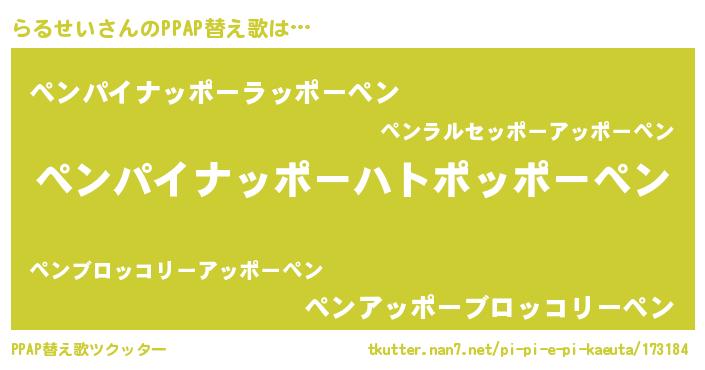 | 料理風あだ名 | 『らるせいのカルパッチョ風』 |