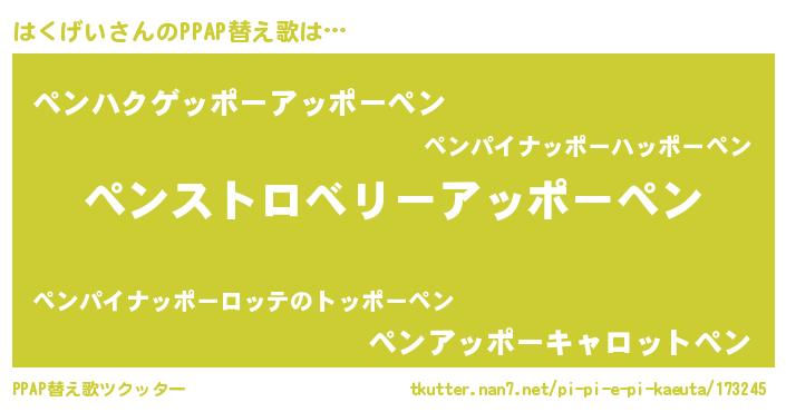 | ピコ太郎風あだ名 | 『ハコ一郎』『ハク三郎』『ピハ史郎』 |