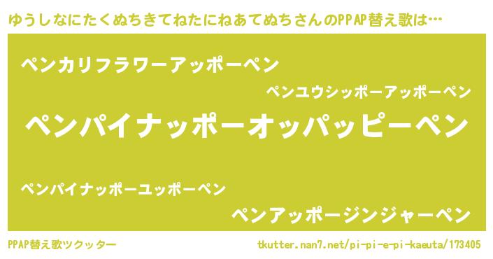 | 欧米人風あだ名 | 『ゆうしなにたくぬちきてねたにねあてぬち・ステッグマイヤー』 |