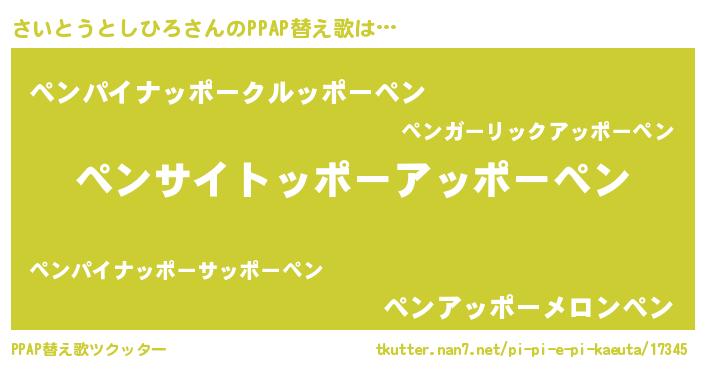 | 意味不明あだ名 | 『とにかく怪しいさいとうとしひろ』 |