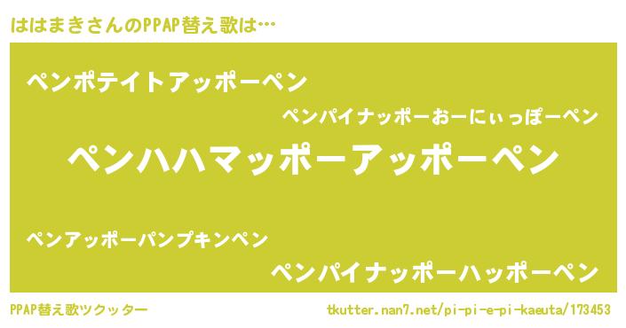 | 欧米人風あだ名 | 『ははまき・ステッグマイヤー』 |