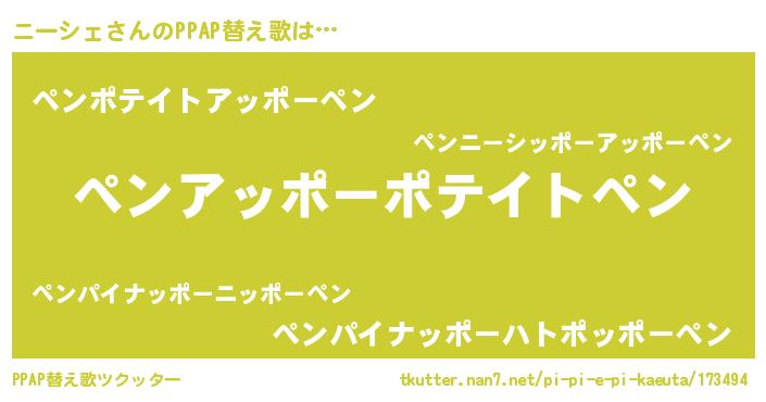 | ピコ太郎風あだ名 | 『ピニ四郎』『ニコ八郎』『ニニ太郎』 |