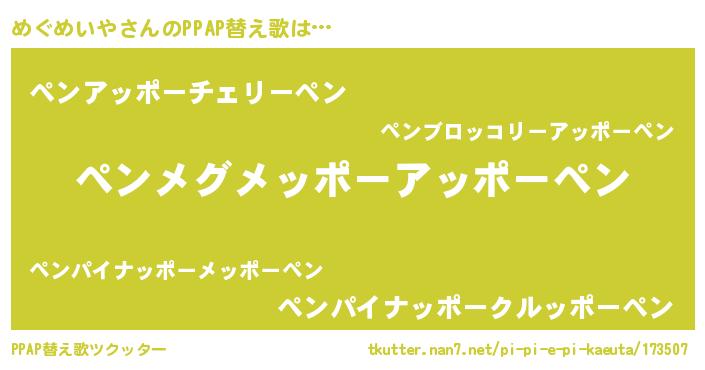 | ピコ太郎風あだ名 | 『メグ史郎』『ピメ史郎』『メメ太郎』 |