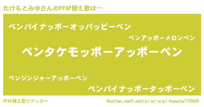 | ポケモン風あだ名 | 『ヒタケモトミユ』『タケゴンZ』 |