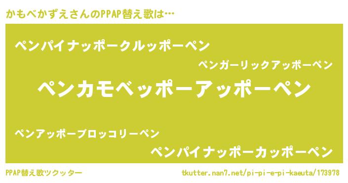 | 欧米人風あだ名 | 『ウサインかもべかずえ』 |