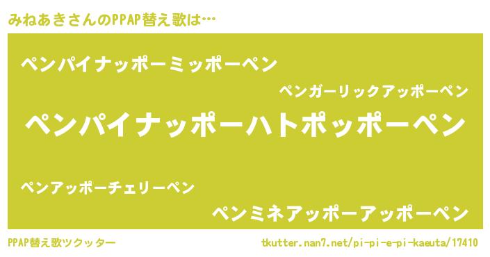 | ピコ太郎風あだ名 | 『ミミ太郎』『ピコミ郎』『ミネ八郎』 |