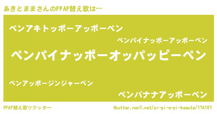 | ピコ太郎風あだ名 | 『アア太郎』『アキ三郎』『アコ次郎』 |