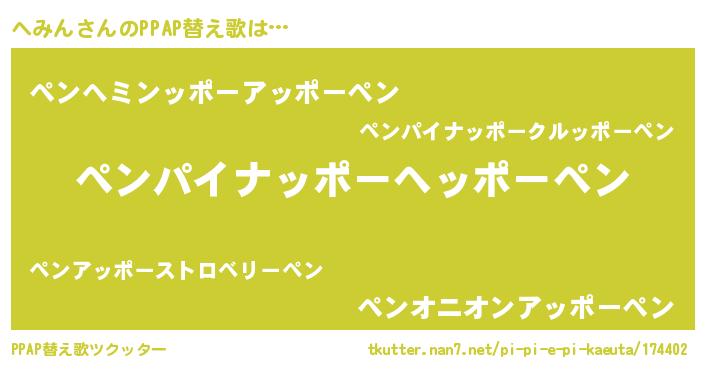| 意味不明あだ名 | 『永久保存へみん』『自称へみん』 |
