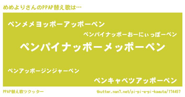 | ピコ太郎風あだ名 | 『ピコメ郎』『メメ二郎』『メコ四郎』 |