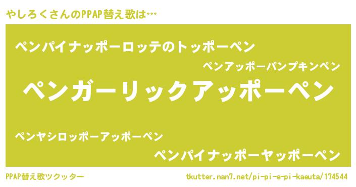 | 欧米人風あだ名 | 『マイケルやしろく』『ダニエルやしろく』 |