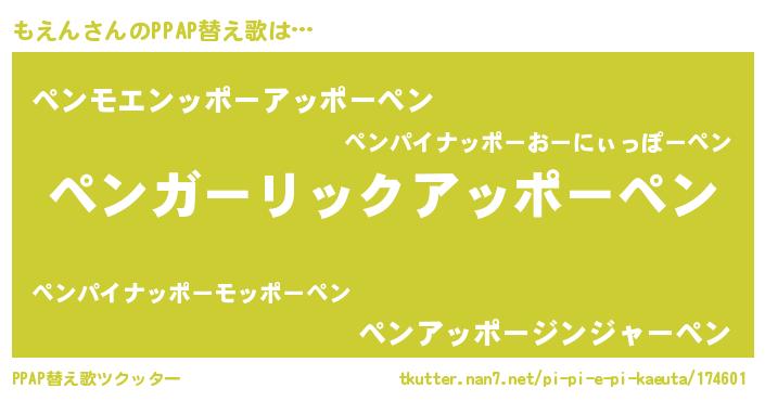 | 意味不明あだ名 | 『ペロリンもえん』『自称もえん』 |