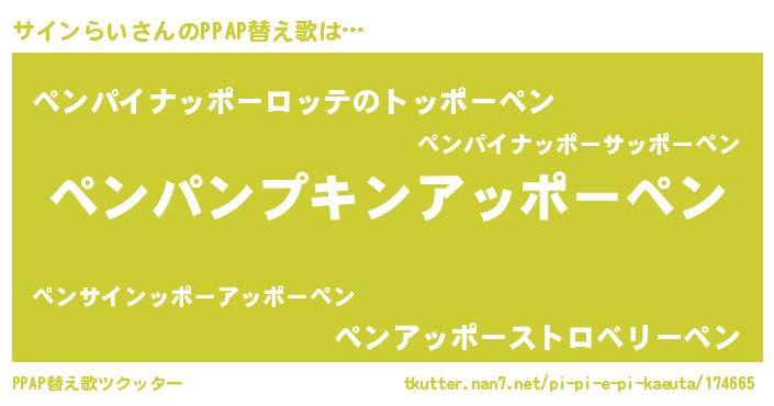 | 男性向けラノベタイトル風あだ名 | 『うちのサインらいが世界を掌握している!』 |