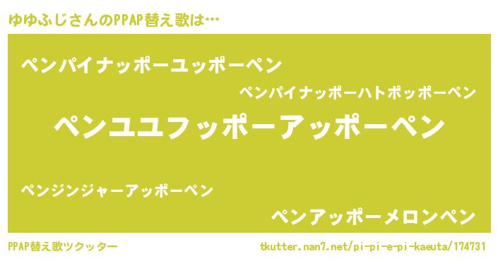 | ピコ太郎風あだ名 | 『ユユ次郎』『ピコユ郎』『ピユ太郎』 |