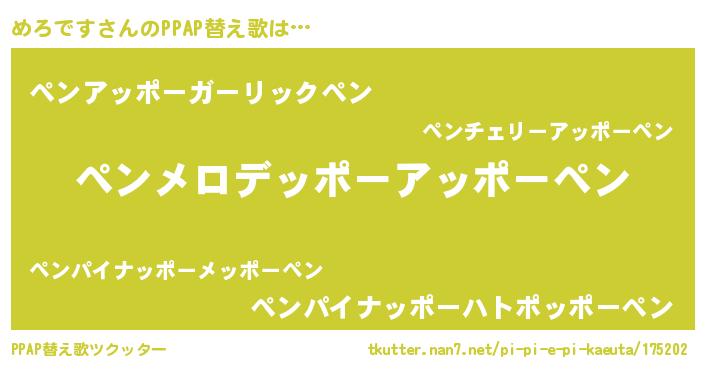 | ピコ太郎風あだ名 | 『メロ五郎』『ピメ八郎』『メメ太郎』 |
