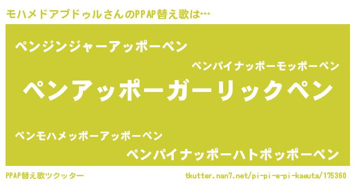 | 欧米人風あだ名 | 『モハメドアブドゥルクリステル』 |