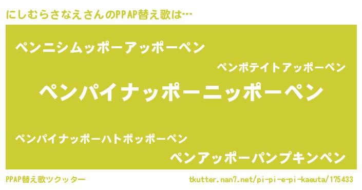 | ヘコむあだ名 | 『にしむらさなえ(小並感)』『にしっちょ』 |