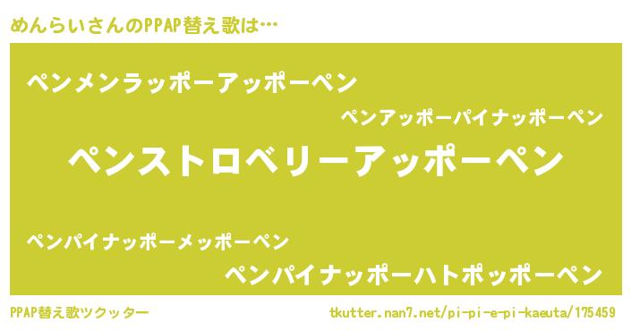 | 意味不明あだ名 | 『ペロリンめんらい』『ニラ科めんらい属』 |