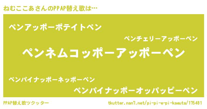 | ピコ太郎風あだ名 | 『ネム十郎』『ピネ五郎』『ネネ太郎』 |