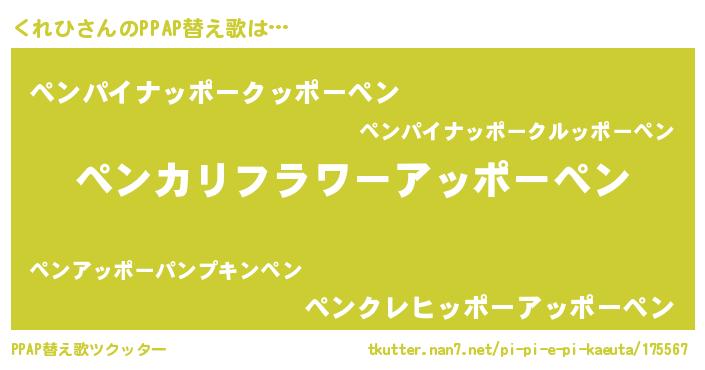 | ピコ太郎風あだ名 | 『クコ二郎』『ピコク郎』『クレ四郎』 |