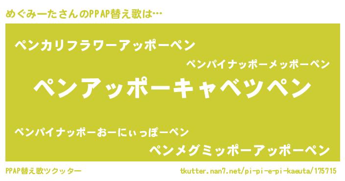 | 意味不明あだ名 | 『めぐみーたフォーエバー』 |