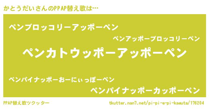 | ピコ太郎風あだ名 | 『カト四郎』『カコ十郎』『ピコカ郎』 |