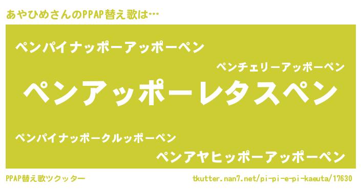 | 男性向けラノベタイトル風あだ名 | 『Re:あやひめから始める異世界生活』 |