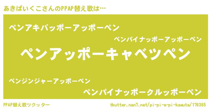 | ピコ太郎風あだ名 | 『ピア四郎』『アキ二郎』『アア太郎』 |