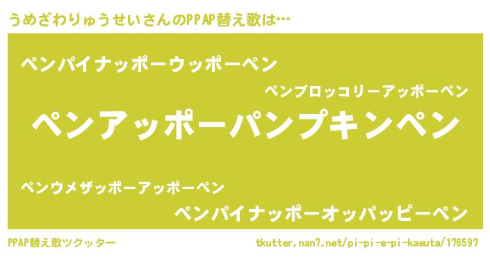 | 意味不明あだ名 | 『住所不定無職うめざわりゅうせい(41歳)』 |