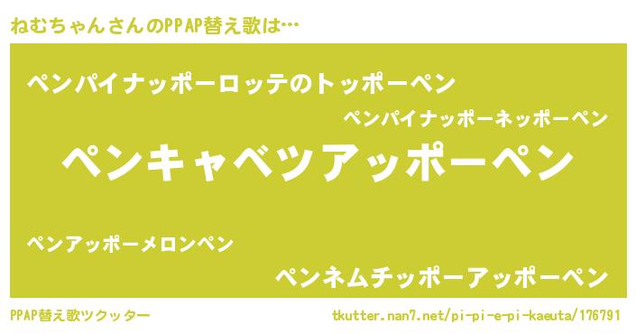 | ピコ太郎風あだ名 | 『ネコ四郎』『ネネ太郎』『ネム次郎』 |