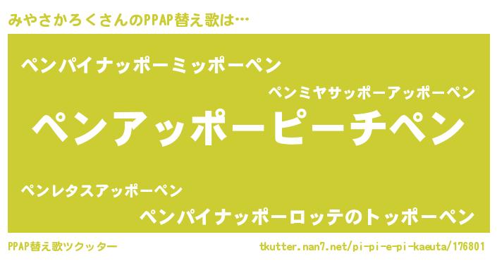 | 男性向けラノベタイトル風あだ名 | 『うちのみやさかろくが世界を掌握している!』 |