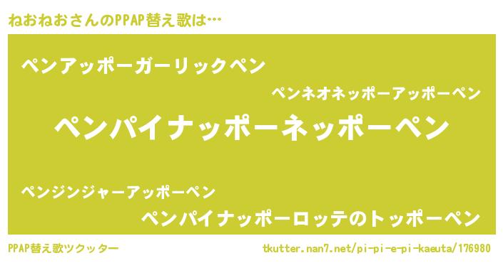 | ピコ太郎風あだ名 | 『ピコネ郎』『ピネ八郎』『ネネ太郎』 |