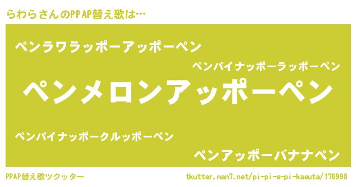 | 意味不明あだ名 | 『ペロリンらわら』『なめこ科らわら属』 |