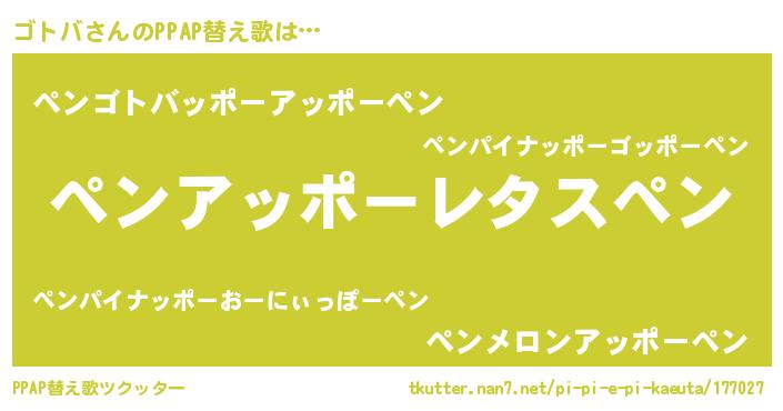 | 欧米人風あだ名 | 『ゴトバクリステル』『トリンドルゴトバ』 |