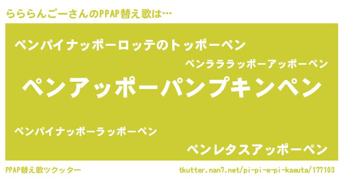 ピコ太郎風あだ名 | 『ピラ二郎』『ララ太郎』『ラコ二郎』 |